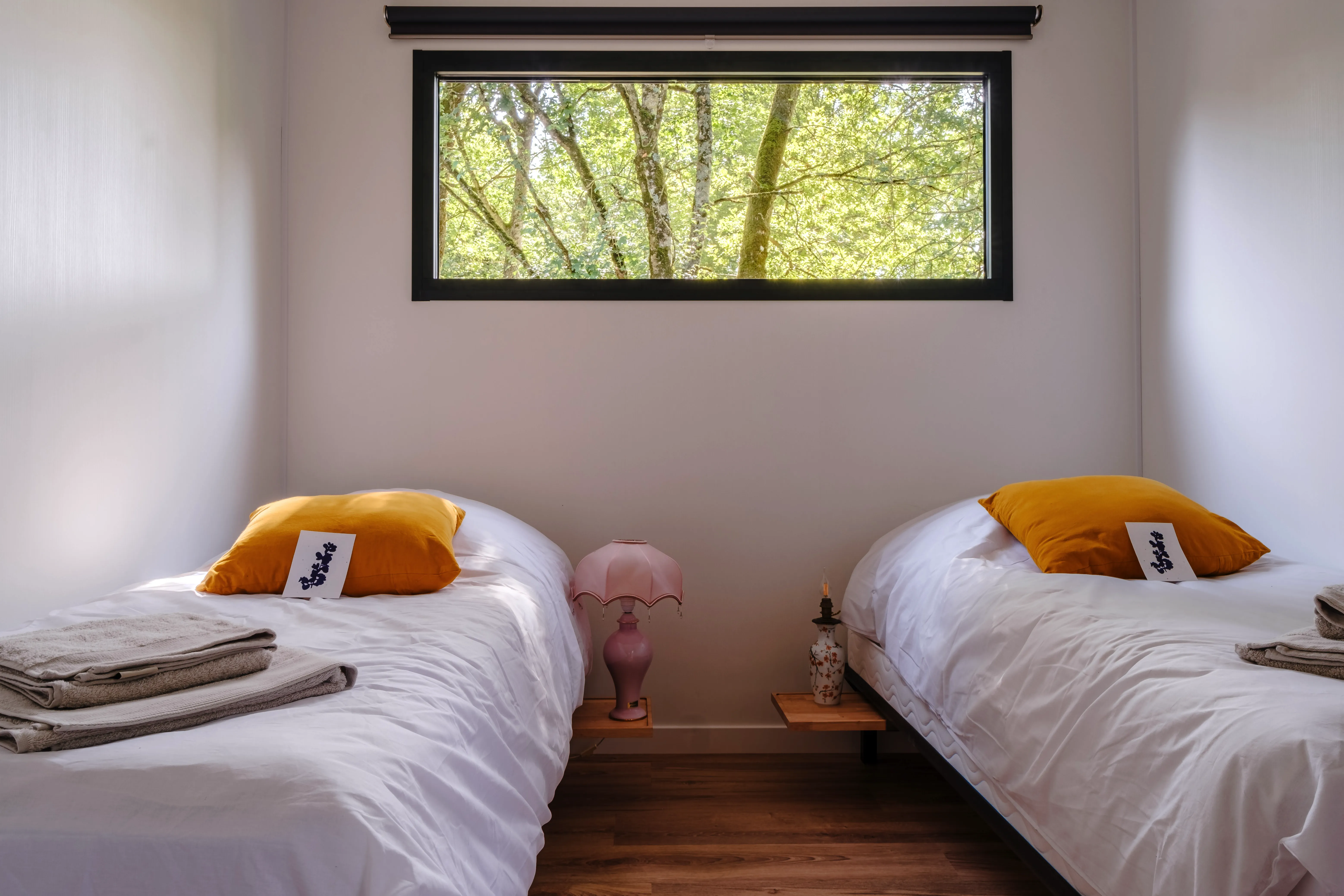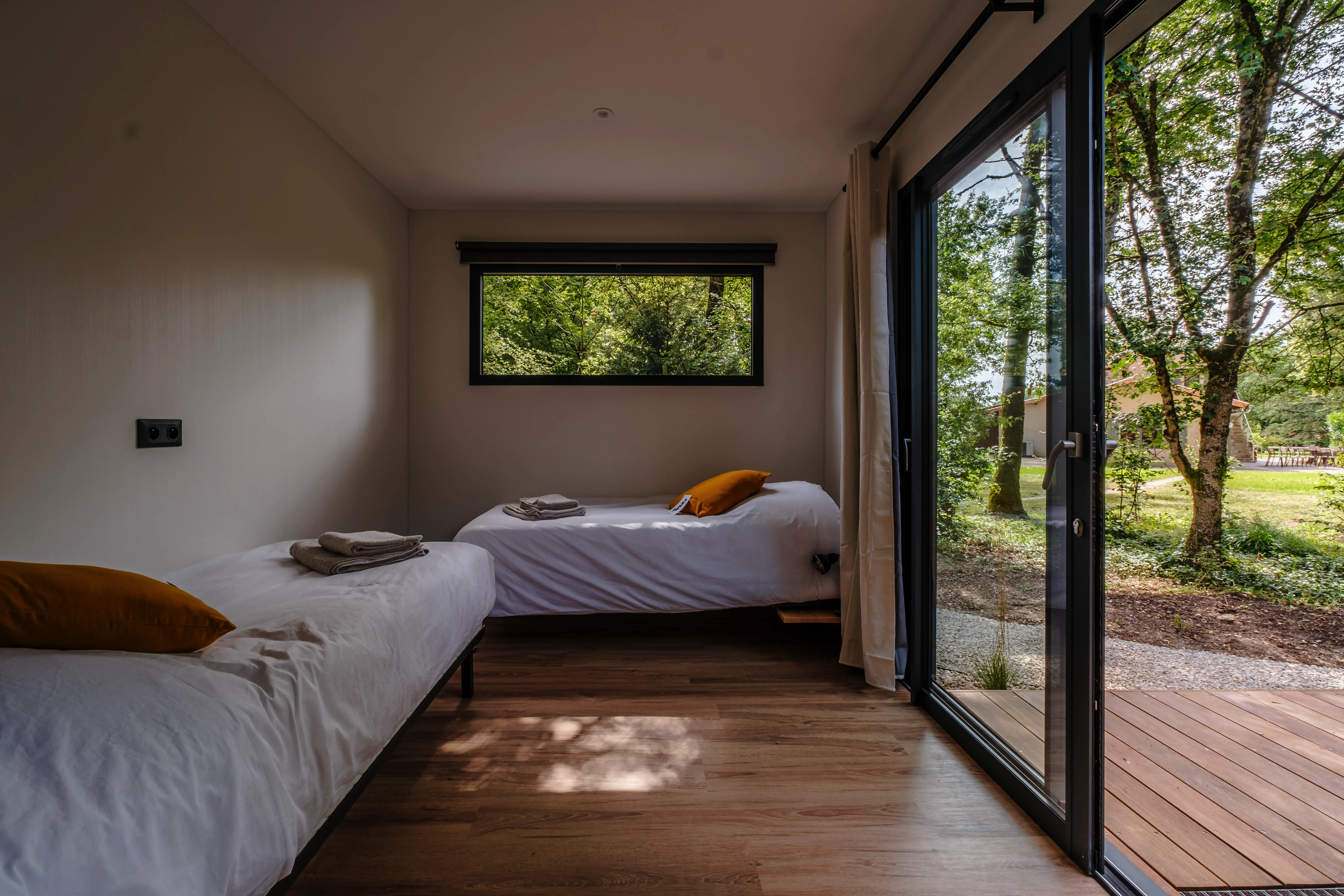 ✓ 2 Tiny Houses avec 3 lits simples, serviettes et draps fournis