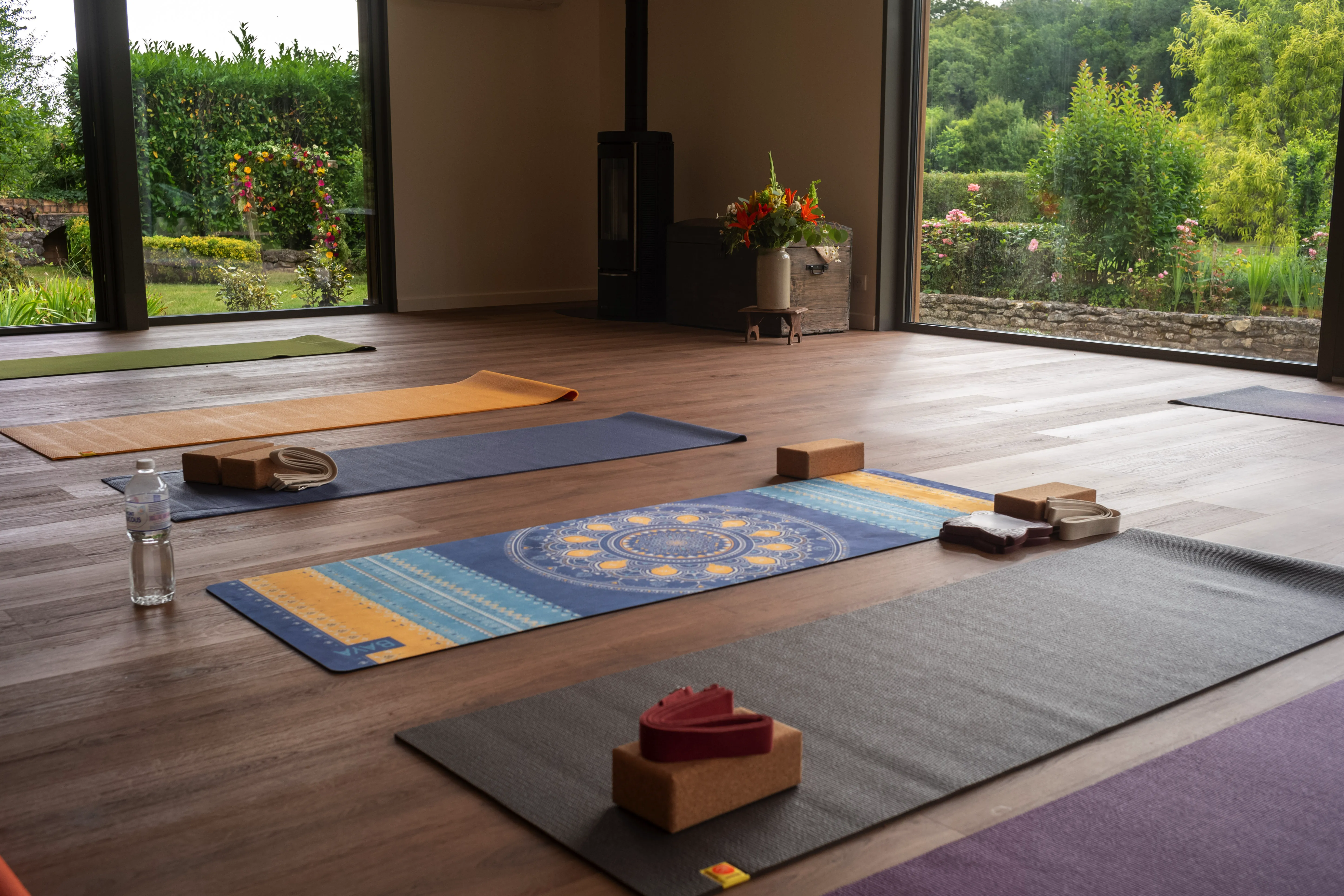 ✓ Matériel de yoga fourni : briques, tapis, coussins, sangles, couvertures