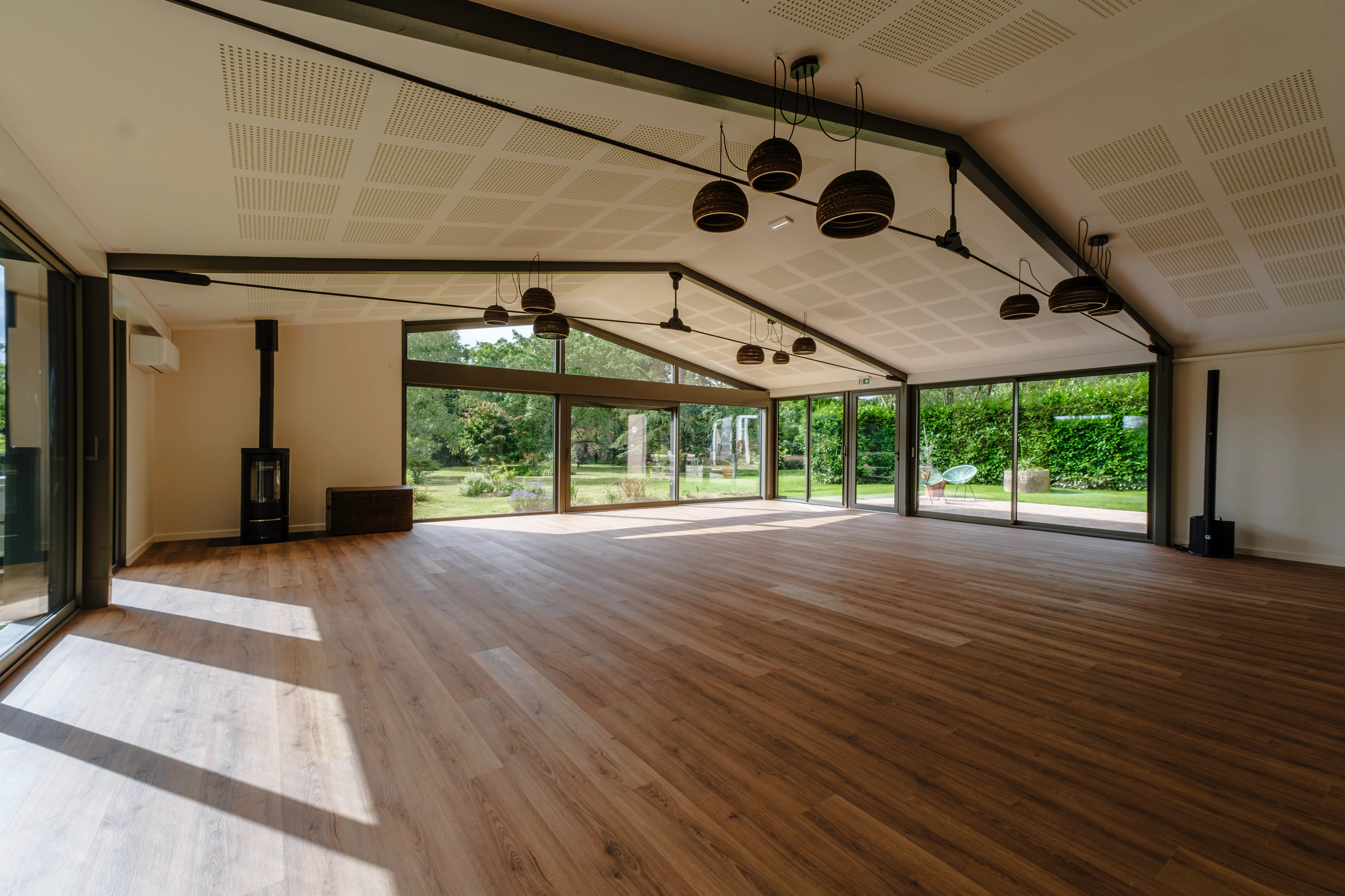 ✓ Salle de pratique de 100m² avec parquet, ouverte sur la nature
